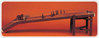 In the past, the geomungo was a favorite musical instrument, particularly revered by scholars. Of all the instruments in the string section, the geomungo is considered the ‘leader,’ largely thanks to its wide range of sound spanning over three octaves. The geomungo typically has 6 twisted silk strings: three of which pass over a series of 16 convex frets, and the remaining of which rest upon three movable bridges called anjok. The instrument is plucked with a bamboo stick called a suldae. Sounds produced by traditional Korean instruments are expressed orally in a system known as gueum, much like pitches are often expressed by the syllables do, re, mi, fa, and so on. For geomungo, the various sounds are expressed by the words/syllables 'dang', 'dung', 'dong', 'jing', 'deung', 'deong', 'heung', and 'cheong,' which are very melodic words, despite their relative lack of meaning.