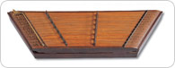 Perhaps the most well known of all Korean traditional instruments to date, the gayageum has a clear and graceful sound and is relatively easy to learn. It has 12 silk strings and a resonating chamber hollowed out of wood from the paulownia tree. When playing the gayageum, the left hand presses the strings below the anjok (the movable bridges supporting the strings), while the right hand plucks or strums the strings above the bridge. Types of gayageum include the pungnyu gayageum from the Silla Era (BC 57 - 935) and the sanjo gayageum used in folk music, along with a number of modern-day variations featuring more strings.