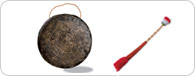 The jing is a large gong that is widely used in farmer, shaman, Buddhist, and military music. It is made using high-quality brass. The jing used in farmers music is, on average, 37 centimeters to 38 centimeters in diameter; the one used in court music is slightly larger, while shamans use slightly smaller ones. It is struck with a padded stick for a softer tone. In samullori, the jing serves to keep the beat. Depending on how hard it is struck, it either gives a gentle, lingering sound or a big, magnificent sound with lots of reverberation.