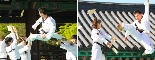 There are various kinds of taekwondo-related performances and hands-on programs for international visitors who are interested in experiencing traditional culture at Namsangol Hanok Village. Visitors can enjoy watching creative performances that blend taekwondo forms with art and a children's taekwondo demonstration team. International visitors will also have the chance to learn taekwondo's basic forms, self-defense skills, breaking and more through classes offered in two skill levels. To participate, visitors must sign up for the class online in advance, choosing the level they feel is the best match for their abilities. Admission to Namsangol Hanok Village is free of charge; however, fees apply for participation in the experience programs. For detailed information, please visit the official website.