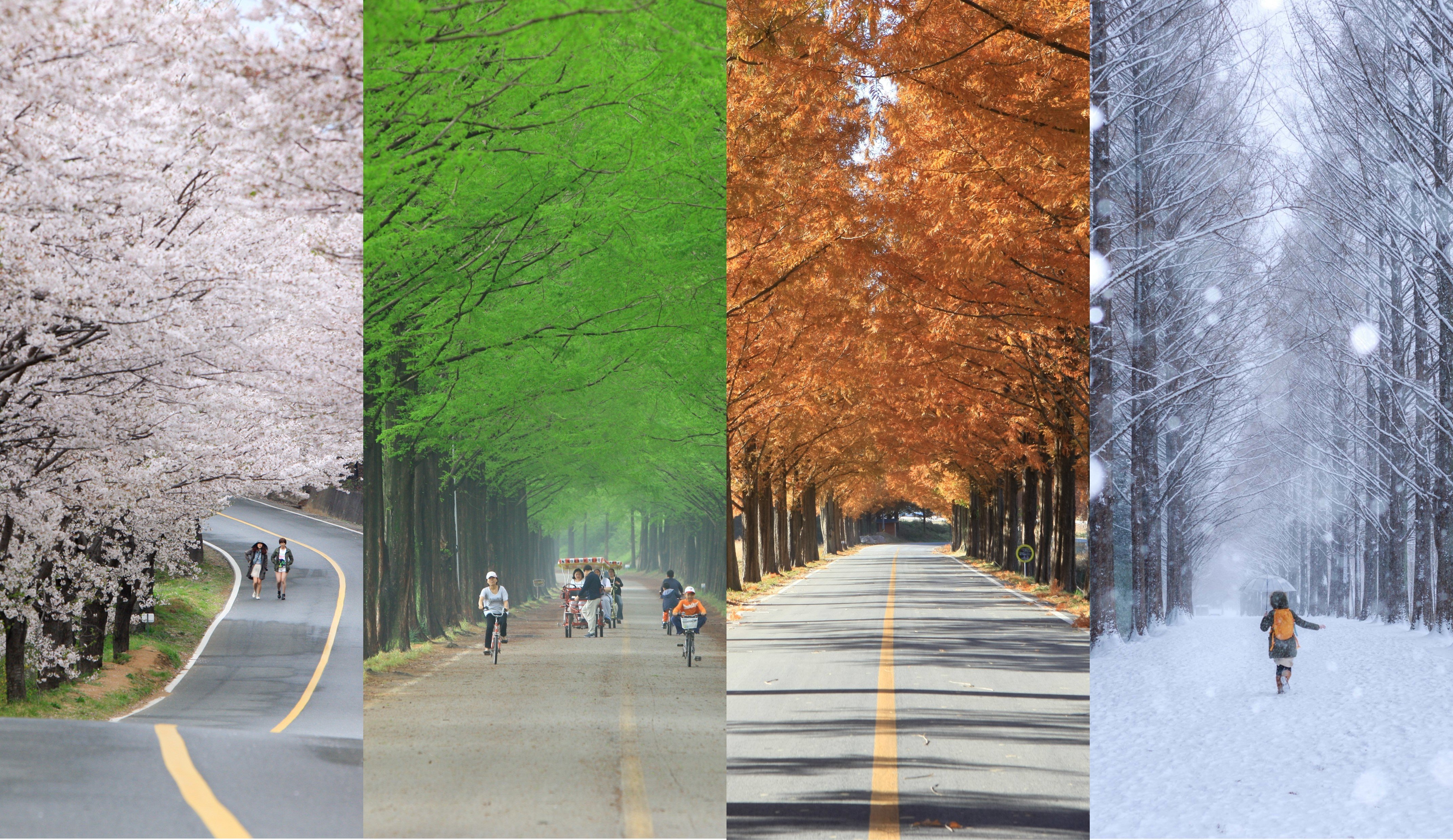 Selama kurun waktu musim gugur, iklim di Korea cukup hangat, cuaca pun cerah, langit berwarna biru, dengan dedaunan menakjubkan. Musim dingin sangat dingin dan kering, namun merupakan waktu tepat untuk berkunjung ke Korea bagi wisatawan yang tertarik dengan olahraga musim dingin, karena Korea memiliki banyak tempat untuk olahraga ski. Musim semi yang dimulai pada bulan April hingga Mei juga sangat indah dengan pohon bunga ceri (cherry blossom) bermekaran. Namun, musim ini tergolong musim padat pengunjung, sehingga turis perlu memesan terlebih dahulu untuk dapat memastikan akomodasi dan fasilitas wisata tersedia. Bulan-bulan musim panas sangatlah lembab, panas dan agak ramai, karena ketika musim hujan sudah tiba maka banyak kegiatan yang harus disesuaikan dengan fluktuasi hujan yang lebat.