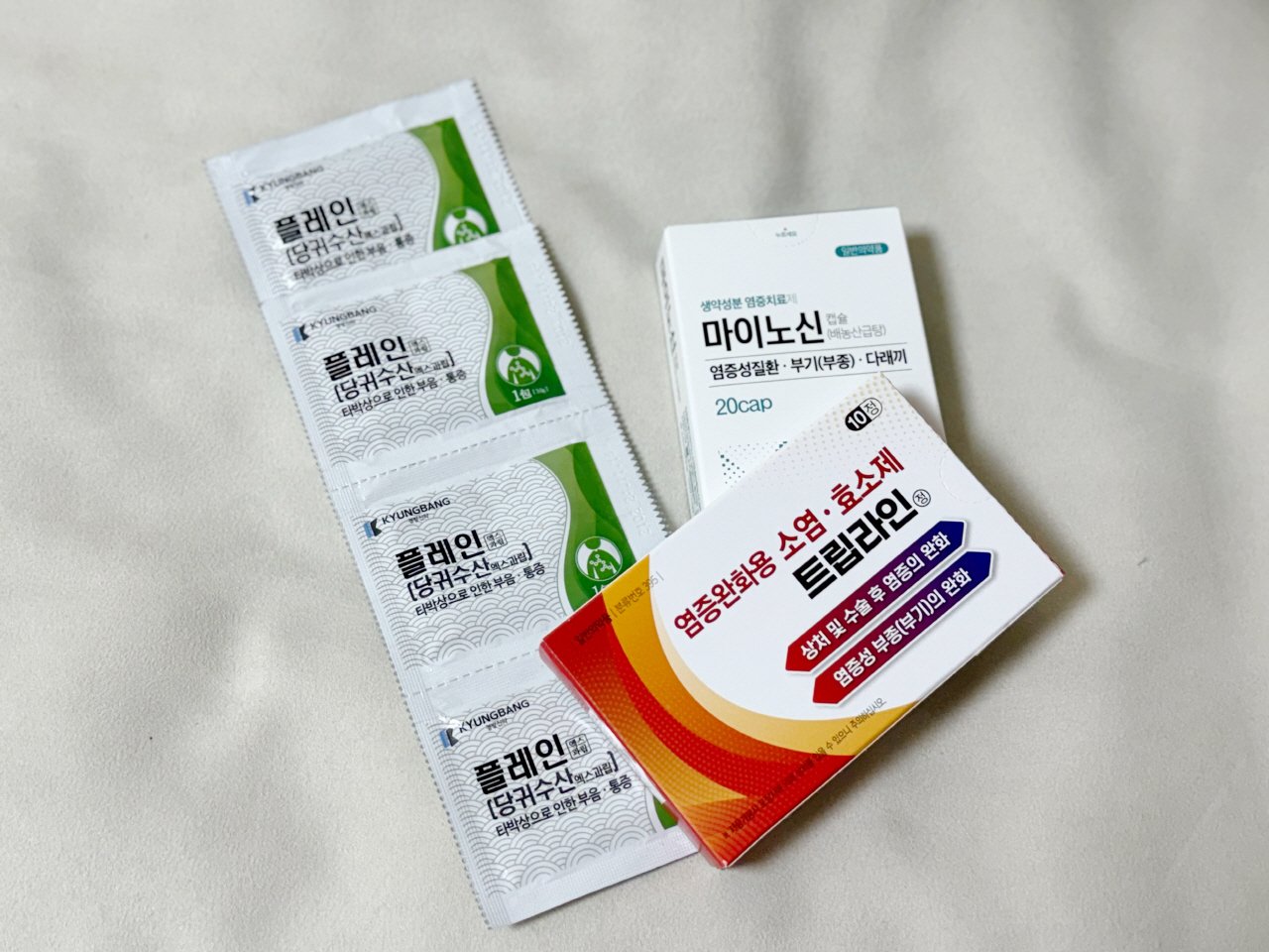 The three products recommended by the pharmacist were all medications that could be taken on an empty stomach. I took them in a hurry, but I was still worried about whether they'd work. Usually, pumpkin tea, honey-infused green tea, or cardio exercises are effective for reducing swelling, right? I wondered if the medication would really help with the swelling. And to my surprise, the swelling started to go down gradually!