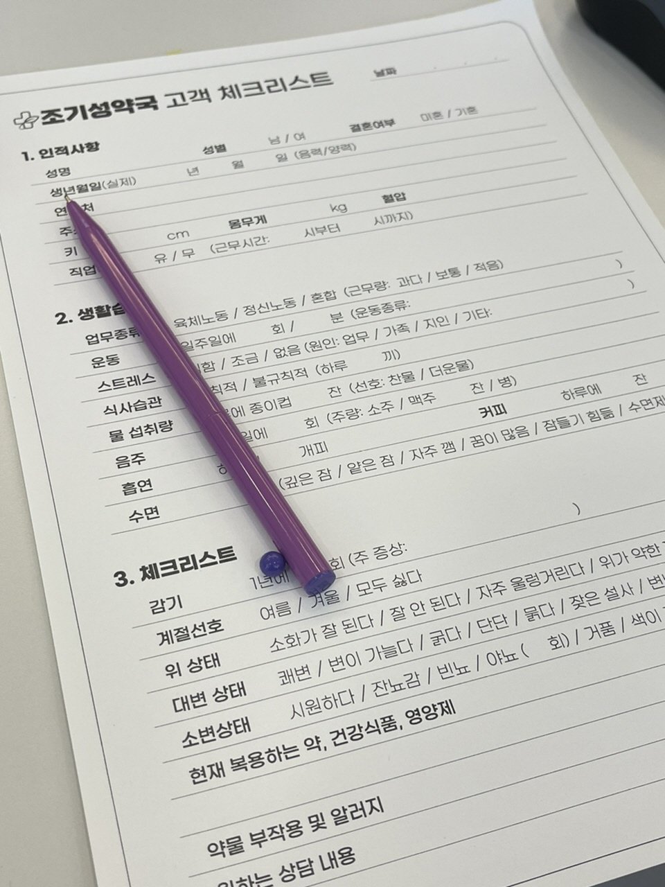 Customer Checklist at a Health Consultation Pharmacyⓒsejstyle8016(Naver blog)