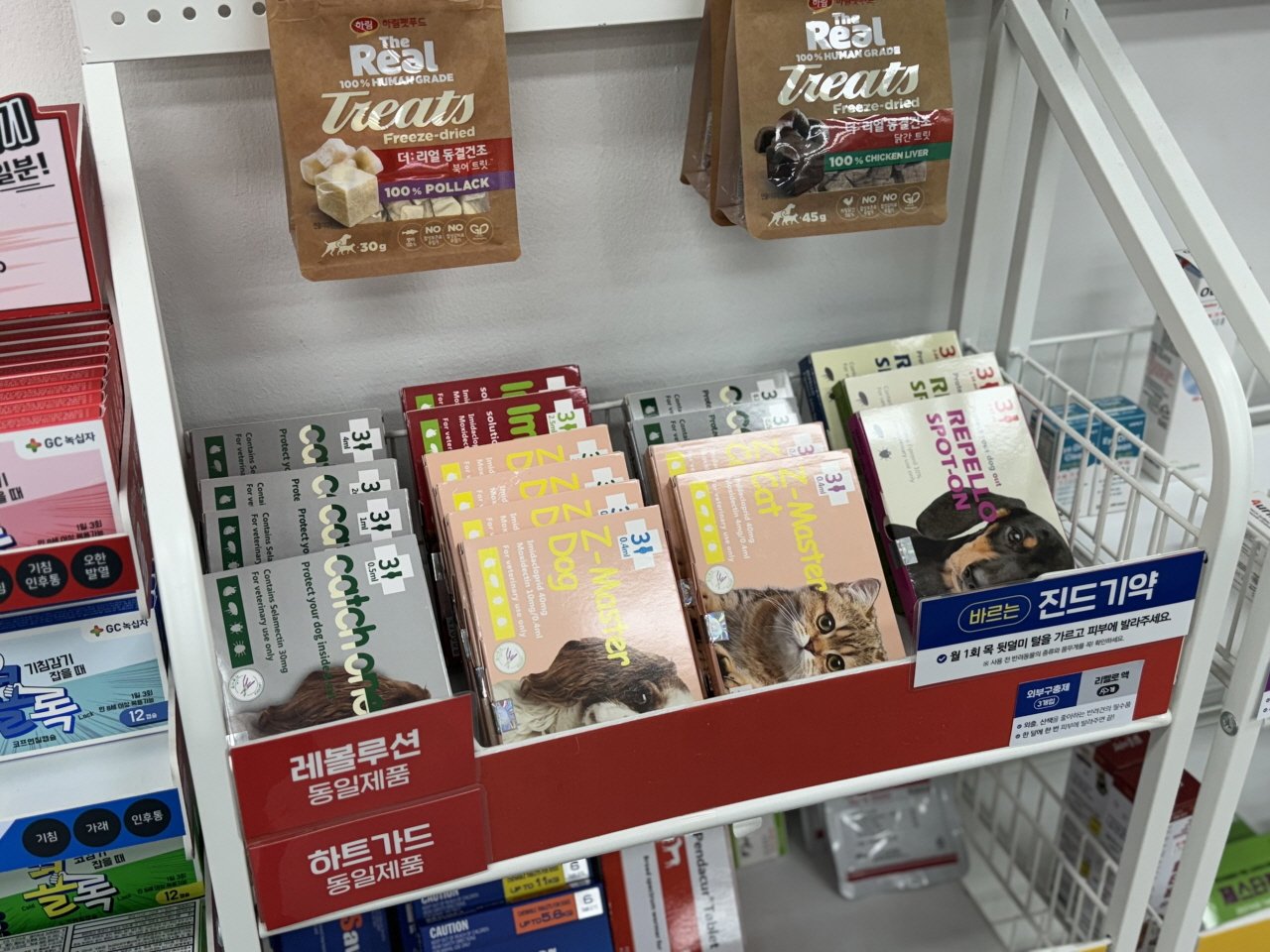 Korean pharmacies aren’t just for medicine—you can also find skincare products, functional cosmetics, and even veterinary medicines all in one place. Products sold at pharmacies are known for their high quality and great value, having passed the strict standards of pharmacists. In fact, pharmacy skincare products recently caused a sellout frenzy in Korea due to their reasonable prices and excellent ingredients. Veterinary medicines, such as dewormers and basic first-aid supplies, are also available at more affordable prices than at animal clinics, making them a well-known secret among pet lovers.