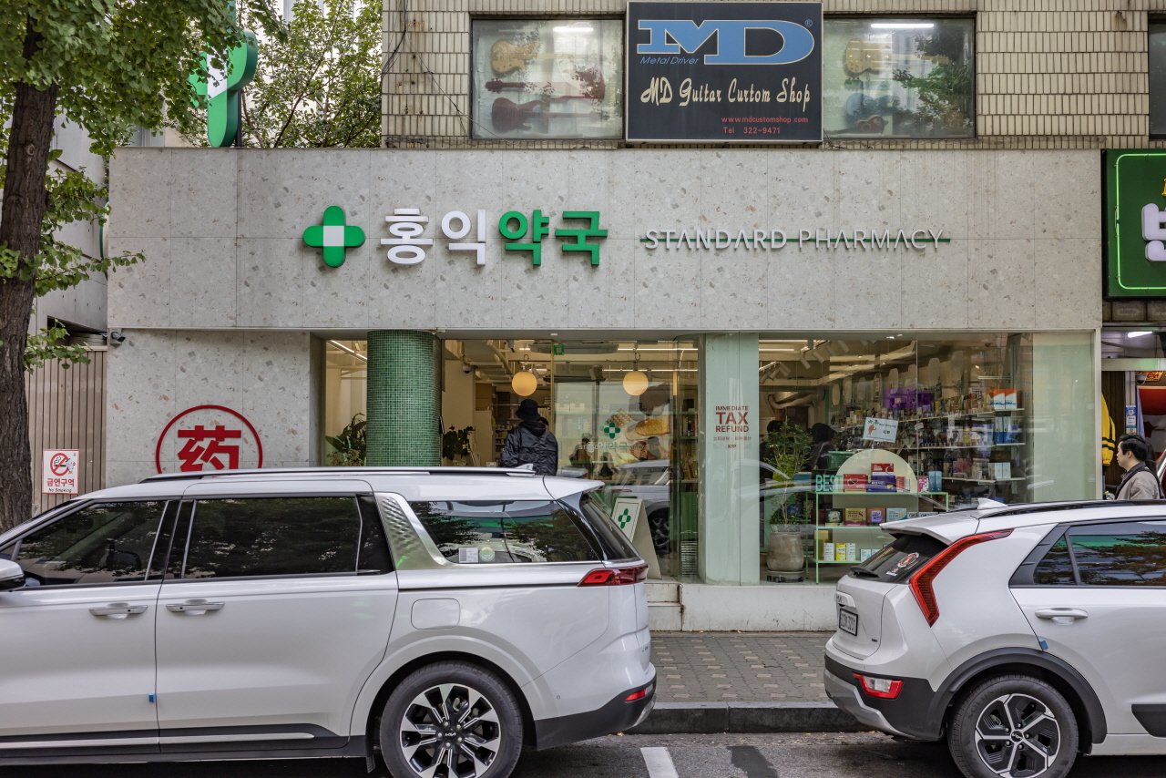 A pharmacy in front of Hongik University Station