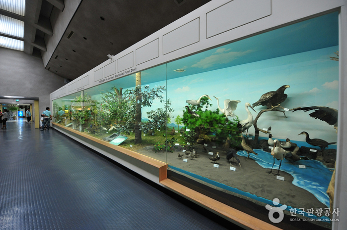 The Jeju Folklore & Natural History Museum showcases the island's unique traditional culture and natural environment. It features exhibits on Jeju’s natural history, folklore, marine life, and an interactive Jeju Experience Center. Enhancing visitor engamgent, the museum includes dioramas and animated films. A highlight of the Sea Exhibition Hall is the 13m-long skeleton of a Bryde's whale, discovered dead on a jeju beach in 2004.
