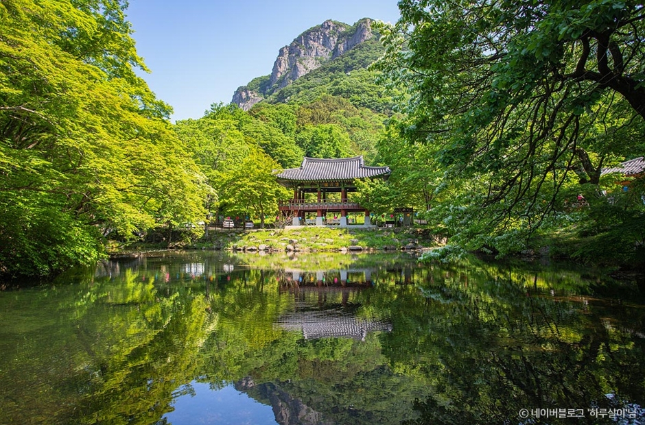 Baegyangsa Temple is a historic temple built in the 6th century located on Baegamsan Mountain. Walking through the forest path, visitors are greeted by a serene lake overlooked by Ssanggyeru Pavilion at the entrance of Baegyangsa Temple, creating a picturesque scene especially during autumn with its vibrant foliage. Surrounding the temple are over 5,000 torreyas, some over 500 years old, lending a lush ambiance to the area. Baegyangsa Temple is picturesque in every season and offers temple stay programs for visitors seeking a serene retreat.