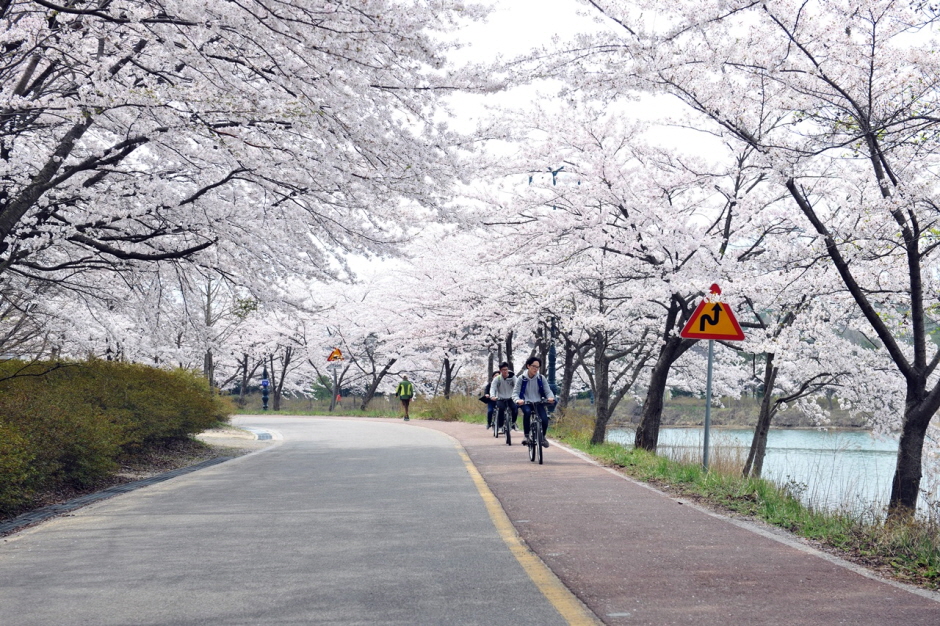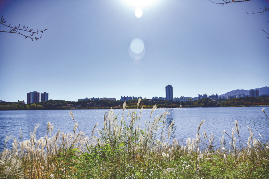 Yeongnangho Lake is a deep and large lake with a circumference of 7.8 km, an area of about 1.2 km2, and a depth of over 8 m, formed by the development of coastal dunes. The source water originates from the Jangcheoncheon Stream, passing through the lake, and goes to the East Sea via the waterway under the Yeongnanggyo Bridge. The lake is adjacent to the areas of Jangsa-dong, Yeongnang-dong, Dongmyeong-dong, and Geumho-dong. The pleasant trail is also established around the lakeside, surrounded by the beautiful scenery of cherry blossoms, azaleas, and reeds. According to Samguk yusa (Memorabilia of the Three Kingdoms), the name of the lake comes from Silla’s hwarang (elite warrior group in Silla) member named “Yeongnang.” After training at Geumgangsan Mountain, Yeongnang passed this lake on the way to get to the martial arts competition. As he was so taken by the splendid landscape, however, he forgot about the competition and stayed here for a long time. As the old record says, Yeongnangho Lake boasts outstanding scenery. Beombawi Rock, in particular, evokes visitors’ admiration as one of the Eight Sights of Sokcho. The rock, which resembles the shape of a tiger crouching down, has an aura of mystery. The nearby tourist attractions also include Gwaneumam Rock, which is known for the strange rocks and bizarre stones, Bogwangsa Temple, and the Wetland Eco Park, which is located in the west of the lakeside.