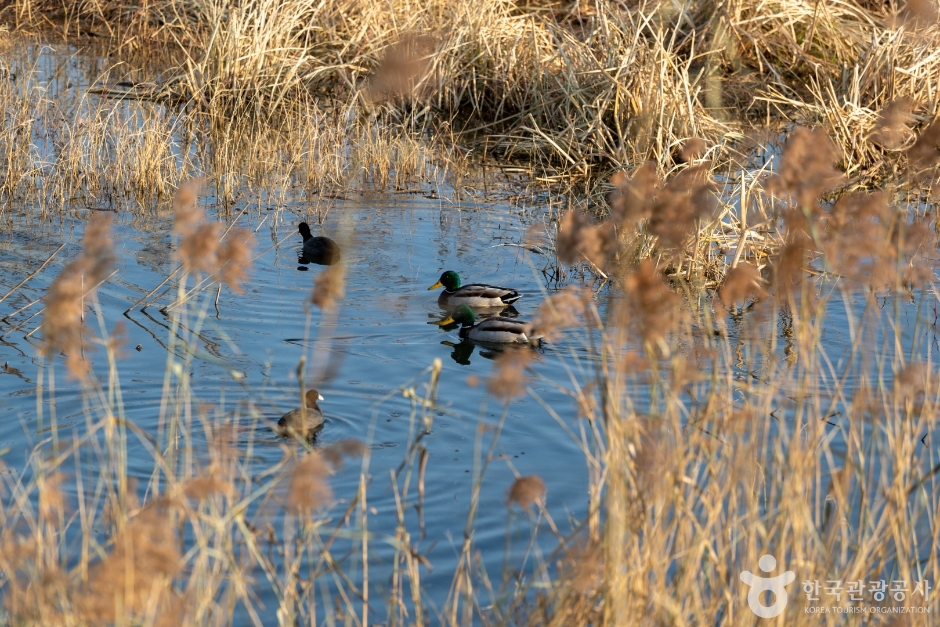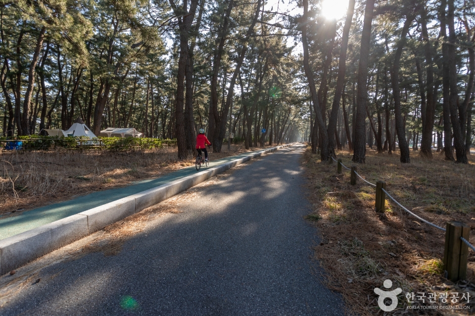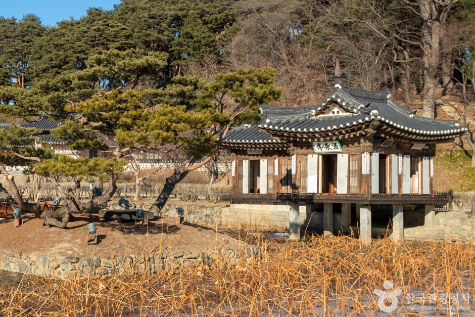 Gyeongpoho Lake is a popular attraction, with beautiful natural scenery and many cultural relics nearby. The view of the moon reflecting off the lake from Gyeongpodae Pavilion is especially stunning. The 1,256,204 m² naturally formed lake is connected to the ocean, and is famous as a destination site for migratory birds in winter. There are also many fish in the lake, but the lake has been designated as a nature protection site and fishing is prohibited.