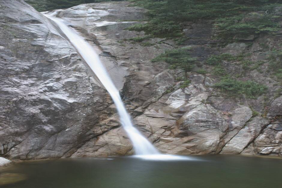 Biryongpokpo Falls is 2.4 km away in the south from the Seoraksan Small Park ticket booth. Biryongpokpo Falls is located between Towangseong Falls in the upper region and Yukdam Falls in the lower region. Biryongpokpo Falls was named after the shape of the water stream of the falls (pokpo) resembling a dragon (ryong) ascending (bi) to heaven. Their powerful water streams pouring into the narrow and rough valley look like a legendary dragon. There is another tale associated with Biryongpokpo Falls. A dragon lived here, and one day villagers offered a maiden to the dragon to break the drought. Then, the dragon flew up to the sky, and there were no more droughts in the village. The waterfalls drop 16 m to the ground and their loud sound resonates in the valley. In winter, the waterfalls freeze and the frozen water columns offer another magnificent view. A clear pond is formed beneath the falls and around which there is a wooden observation deck. Biryongpokpo Falls and Surroundings in Seoraksan Mountain were designated as the Scenic Site No. 95. It takes about 1 hr from the Small Park to the Biryongpokpo Falls, while it takes about 3 hr (round-trip) to visit up to Towangseong Falls and Yukdam Falls. The difficulty level of this tour course is ordinary.
