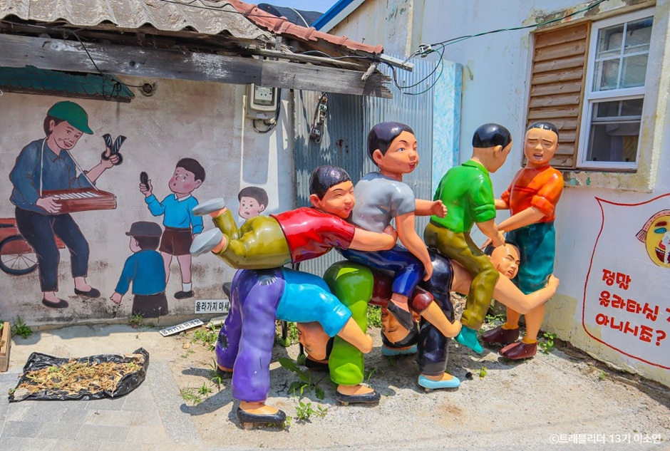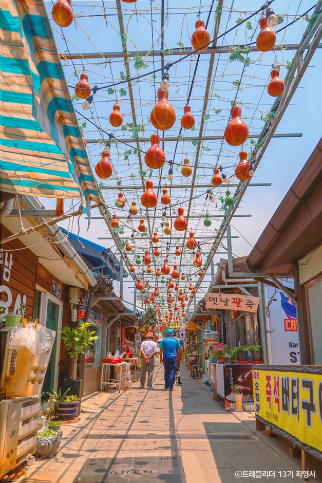 Daeryong Market is an alley market that reproduces the appearance of Yeonbaek Market to maintain a livelihood for residents who temporarily evacuated from Yeonbaek-gun in Hwanghae-do, to Gyodongdo Island during the Korean War. Gyodongdo Island has been the center of economic development for over 50 years. As most of the displaced elderly who created the market passed away and the population rapidly decreased, the market size also reduced considerably. However, with the opening of Gyodongdaegyo Bridge in July 2014, it has become a must-see course for tourists to take pictures of Daeryong Market, which looks like a movie set in the 1960s. Gyodong Giga Island, also referred to as Gyodong Swallow House, opened in late march of 2022 and provides tour information using intellectual techonology as well as bicycle and smartwatch rental services to tourists. In addition, there are various experience programs such as a VR video experience and "Making Gyodong Newspaper.