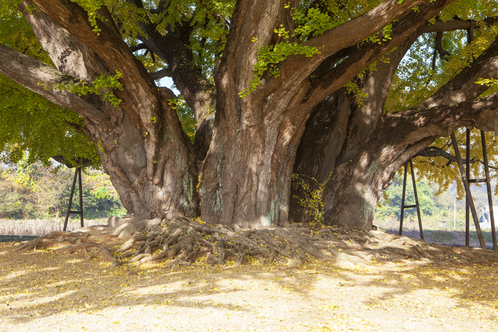 The ginkgo tree in Bangye-ri, Wonju has been protected as a natural monument since its designation on January 31, 1964. The exact age of the tree is unknown, but it is estimated to be over 800 years old. The tree reaches a total height of 33 meters, with a crown stretching 37.5 meters east-west, and 31 meters north-south. According to the legend about the tree's origin, it was planted by a member of the Seongju Lee family, who stopped for a drink of water here and left his staff standing in the ground when he left. The staff then grew into the tree. Another legend about the tree states there is a white snake living in the tree, which is why it has grown so strong and big today. The local farmers believe they will have a good harvest if the whole tree turns gold in fall.