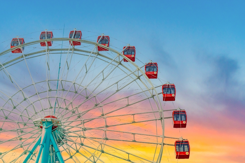 Sacheon Eye, the only ferris wheel in Sacheon, is located at Aramaru, a comprehensive tourist destination that includes a cable car, an aquarium, and a zoo. Rising to 72 meters above sea level, it offers a sweeping panorama of the Namhae Coastal Hallyeosudo. The ferris wheel's roughly ten-minute ride, equipped with air conditioning, provides a cool and comfortable experience. This allows visitors to enjoy the stunning sea views comfortably, even in the summer months.