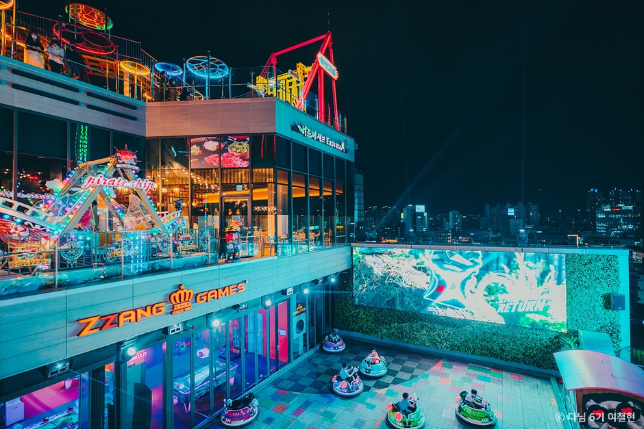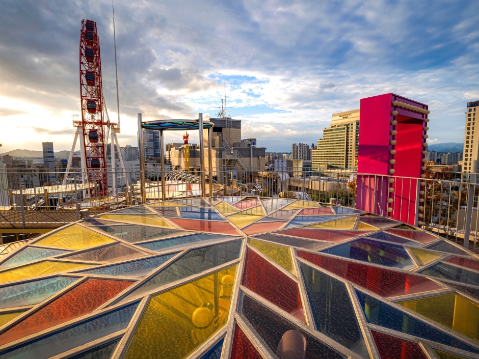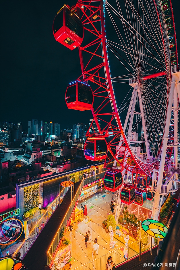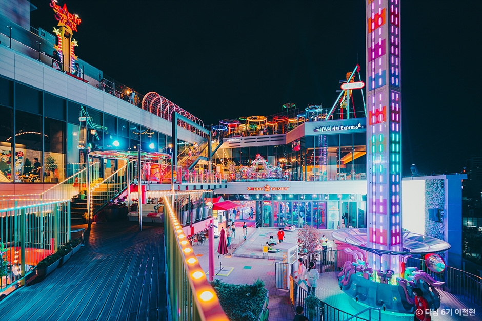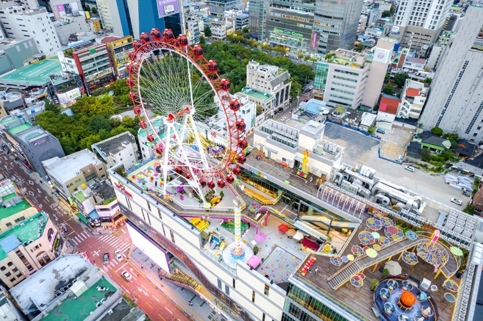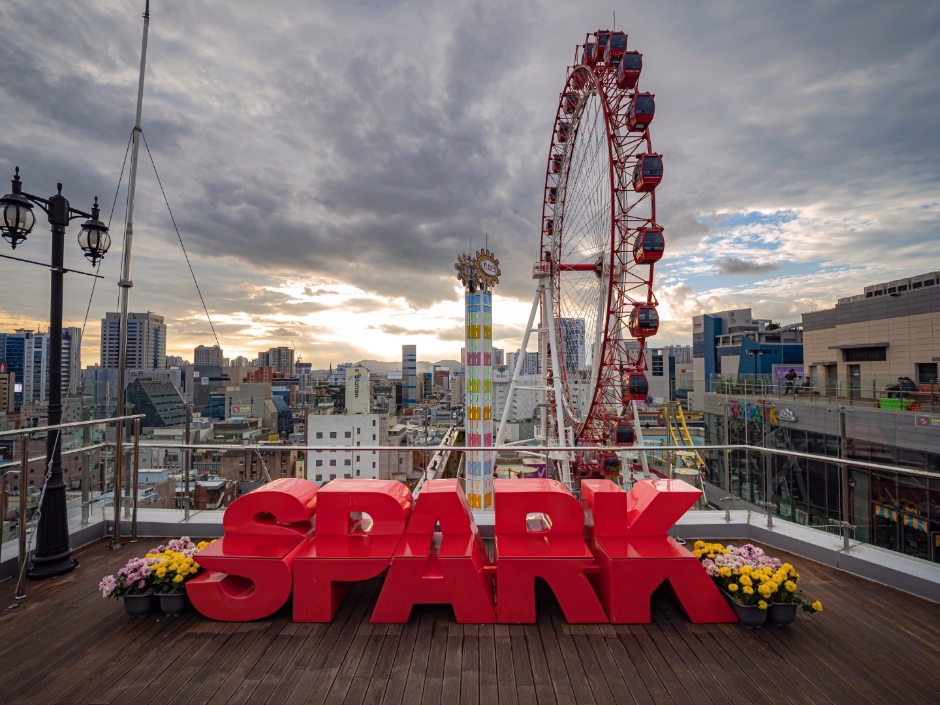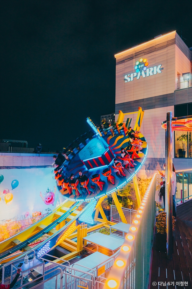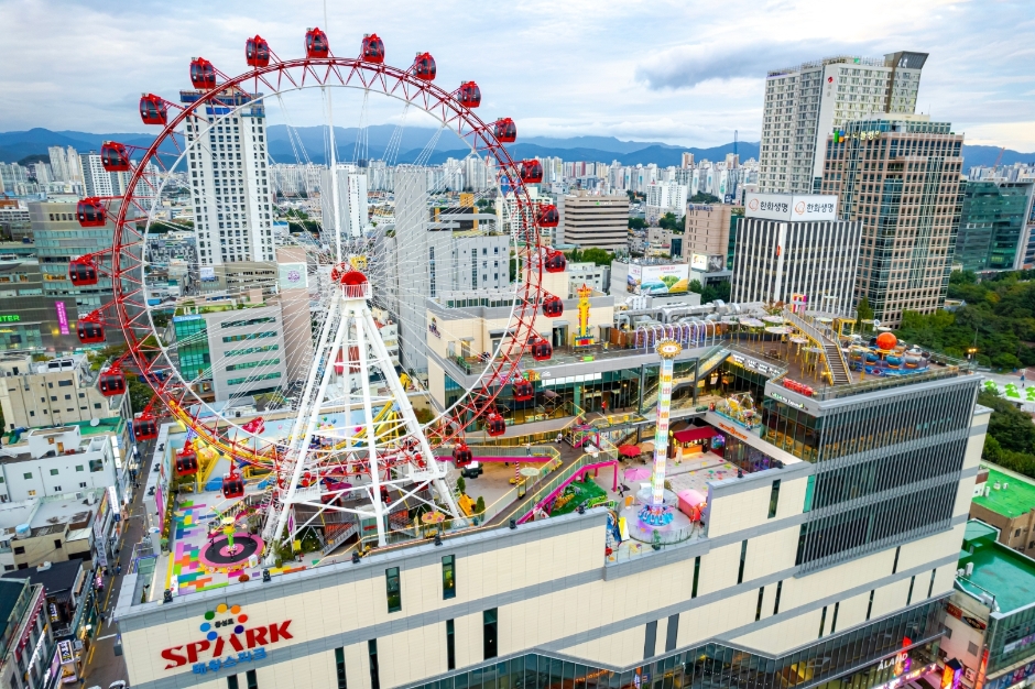 Spark Land, nestled in downtown Daegu, is a dynamic fusion of a shopping mall and theme park. It boasts an array of attractions, including a fashion street, a selection of restaurants and cafés, amusement rides, and indoor sporting facilities. A standout feature is the Ferris wheel, uniquely designed with a reinforced glass floor, offering visitors a remarkable experience. From atop the Ferris wheel, panoramic views of Dongseong-ro Avenue and the wider Daegu cityscape unfold. As evening sets in, the Sky Lounge and Spark Sky are bathed in night lights, transforming the atmosphere into something even more enchanting.