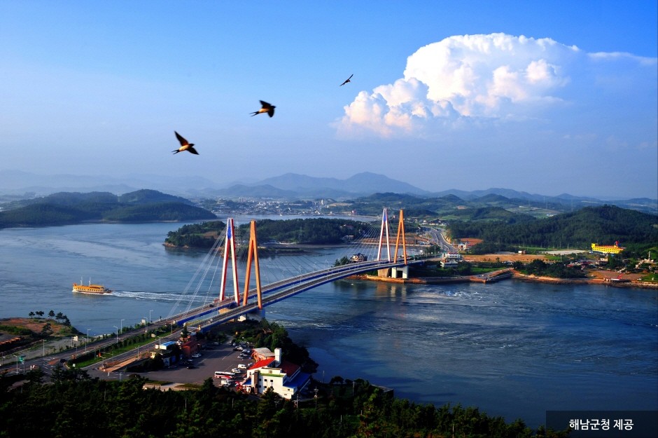 The Battle of Myeongnyang Memorial is located next to the narrow strait called Uldolmok, between Haenam and Jindo. Uldolmok is the site where Admiral Yi Sunsin, under his command, defeated over 300 Japanese warships with only 13 Korean ships during the Japanese Invasion of Korea in 1592 (1592-1598). The exhibition hall commemorates the Myeongnyang Battle and displays weapons used during the Japanese Invasion of Korea in 1592. Visitors can also observe the turbulent currents of Uldolmok from the skywalk.