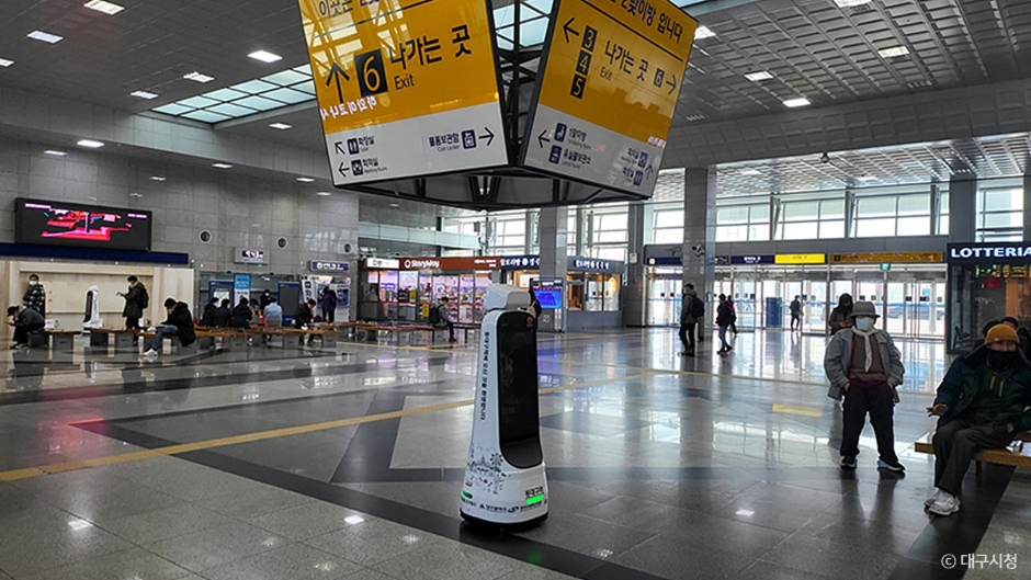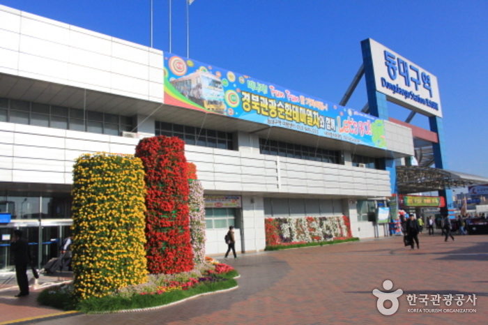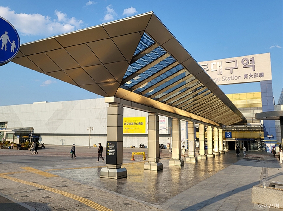 Dongdaegu Station is the largest railway station in Daegu. It serves as a hub for KTX and SRT trains traveling to Seoul, Gwangmyeong, Suwon, Pyeongtaek, Cheonan-Asan, Osong, Daejeon, Gyeongju, Ulsan, Busan, Changwon, and other destinations. Additionally, regular trains operate to Gimcheon, Gumi, Gyeongju, Ulsan, Haeundae, Andong, and more. The station vicinity includes a bus terminal, department stores, and it is connected to the Daegu Metro.