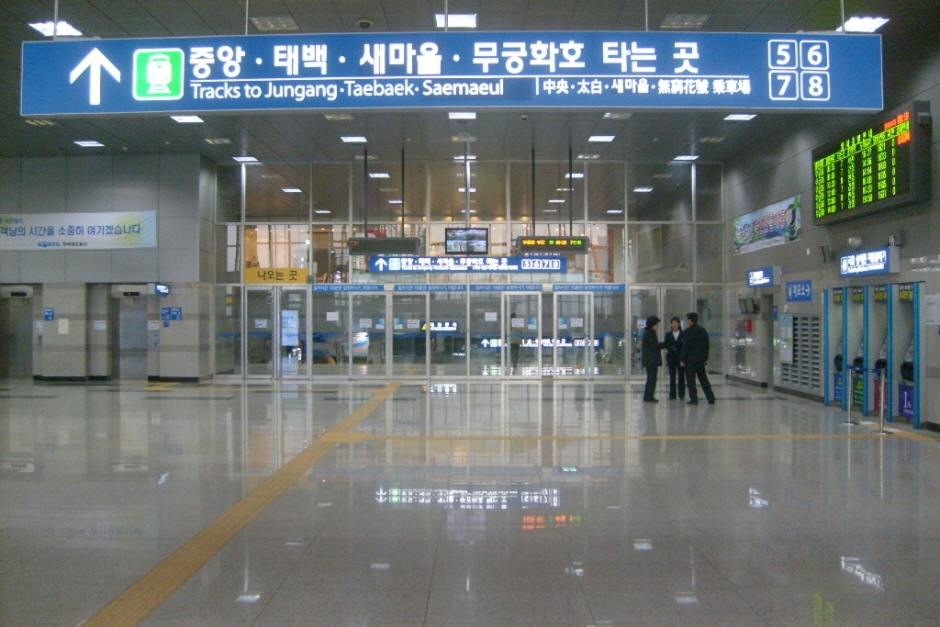 Cheongnyangni Station is a railway station located in eastern Seoul, where the KTX Gangneung Line stops and the KTX Jungang Line departs. You can take the KTX to Gangwon-do and towards Andong in Gyeongbuk. Additionally, regular trains go to places like Taebaek, and the ITX-Cheongchun travels to Gapyeong and Chuncheon. It's also connected to the Seoul metro network, and there are department stores and large supermarkets in the station.