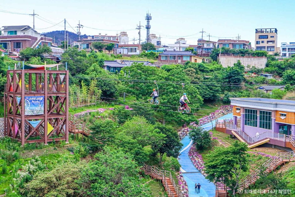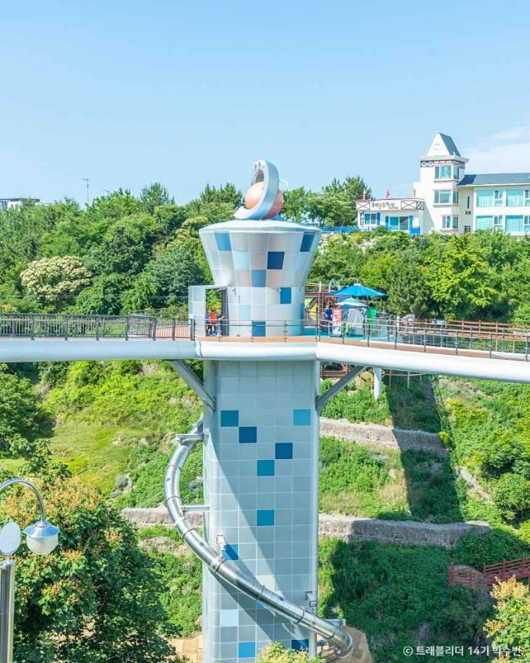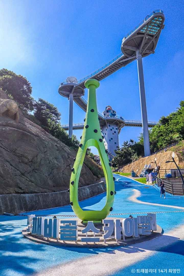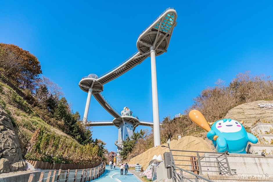 Dojjaebigol Sky Valley, located between Mukho Lighthouse and Wolsotaekji, provides a beautiful view of East Sea with various activities. Dojjaebi is a regional dialect of the word dokkaebi (Korean goblin). Opened in 2021, Dojjaebigol Sky Valley offers entertaining facilities such as Sky Walk, Sky Cycle, and Giant Slide as well as Dojjaebi Art House where visitors can buy souvenirs. Visitors can enjoy beautiful views and exciting activities such as 59-meter-high glass-bottom Sky Walk, floating in air with Sky Cycle, and 30-meter-long Giant Slide.