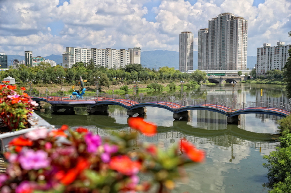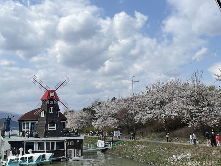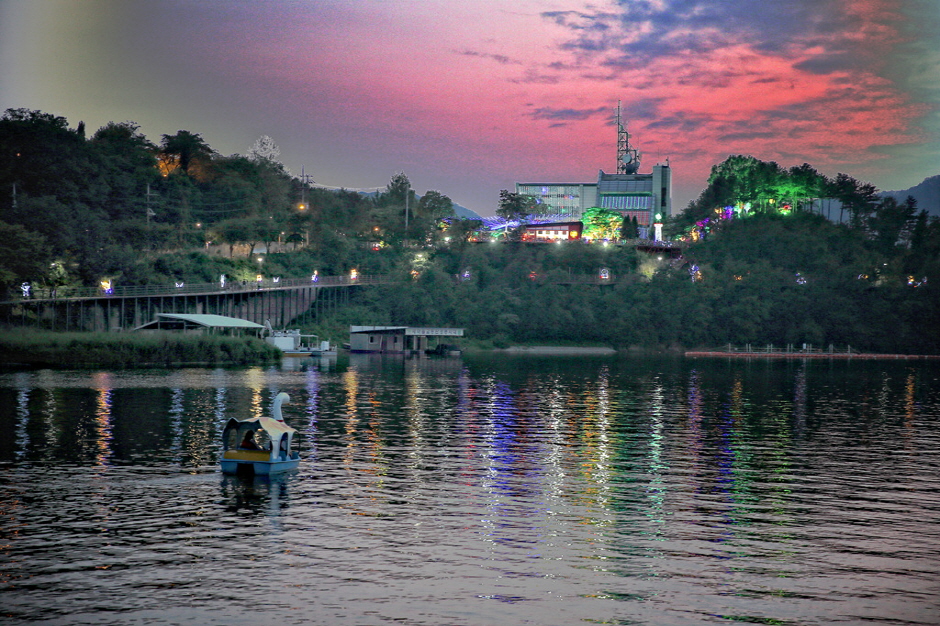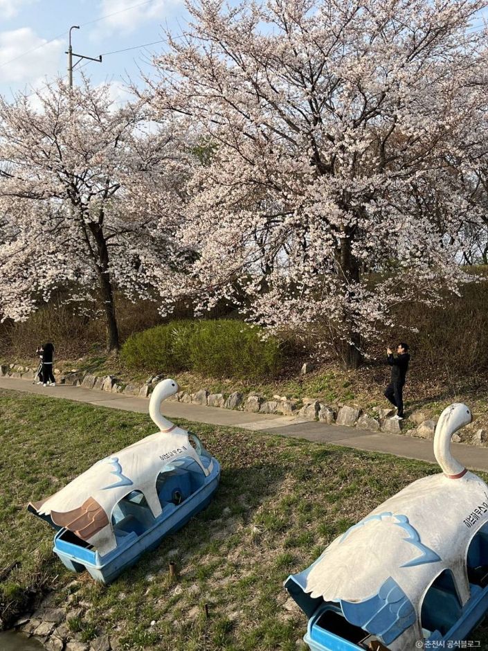 The area of Gongjicheon Stream connected to the Bukhangang River is a shelter in the middle of Chuncheon City. This recreation area comprises various facilities along both sides of the Gongjicheon Stream, including Gongjicheon Sculpture Park, Uiam Park, Memorial Hall for Ethiopian Veterans in the Korean War, inline skating rink, outdoor stage, and fountain. Visitors can cross the water easily through the Gongjicheon Bridge and the lower pedestrian bridge. The waterside trail and the bike path are popular among citizens with the seasonal scenic view. In particular, cherry blossom attracts many visitors in spring. There is a bicycle rental stand nearby the stream. It is recommended to enjoy biking around the Gongjicheon Stream or along the Uiamho Bike Path. Another interesting ride is a pedal boat with which visitors can create a romantic memory with a splendid scenery of the Gongjicheon Stream.