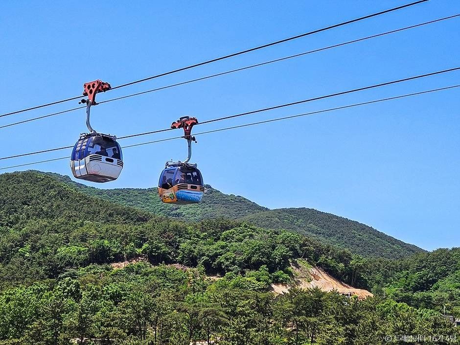 Tongyeong Cable Car installed on Mireuksan Mountain in Tongyeong is 1,975 meters long, and a bi-cable automatic circulation gondola system was installed using the latest Swiss technology. At an average speed of 4 meters per second, it takes about 9 minutes to reach the upper station, circulating a total of 48 gondolas that consist of 47 passenger gondolas and 1 cargo gondola. The cable car implemented an eco-friendly design and has only one intermediate support with the aim of protecting the environment while providing a comfortable ride for passengers. In addition, the 8-person gondolas operate non-stop, allowing passengers to board without delay and enjoy the beautiful scenery of Korea’s beautiful ocean in privacy with their loved ones. They also have a pet-friendly cable car, allowing visitors to ride with their pet.