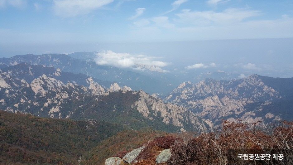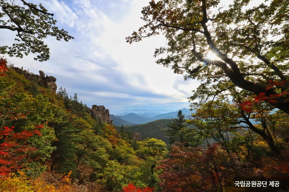 Seoraksan Mountain, the highest amid the Taebaek Mountain Range, boasts beautiful landscape and scenery all year round. To the east of Hangyeryeong and Misiryeong Passes is classified as the outer section ("Oeseorak"), to the west is the inner section ("Naeseorak"); and to the south of Hangyeryeong Pass as the southern section ("Namseorak").