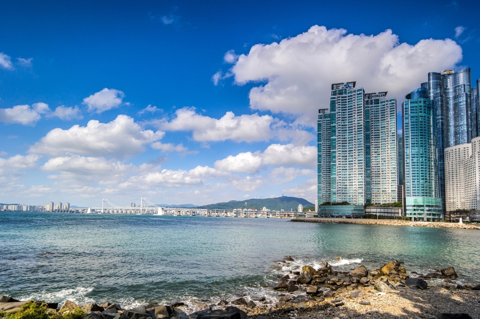 Dongbaekseom Island is easy to navigate thanks to the walking path that is built around it. The island has several attractions, including the monument inscribed with a poem of scholar Choi Chi-won, the mermaid statue based on the legend of Princess Hwagok, and the Nurimaru APEC House. It also offers fantastic views of the Busan shoreline towards Mipo, Dalmaji Hill, Gwangangdaegyo Bridge, and Oryukdo Island. As the name suggests, camellias burst into bloom everywhere on the island from winter to spring.