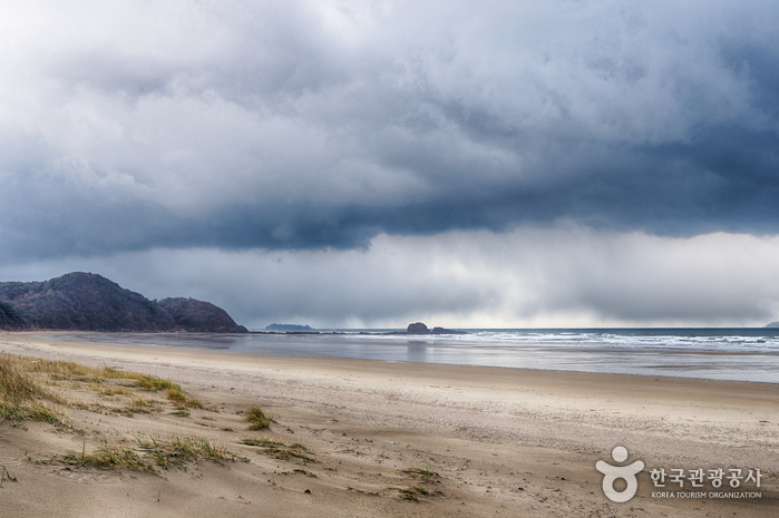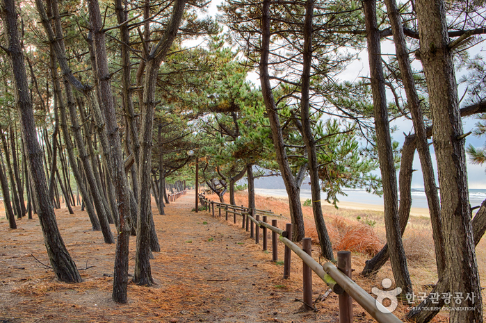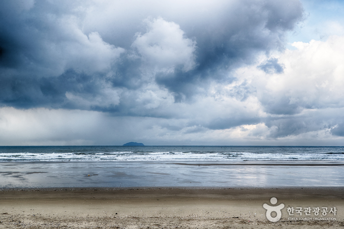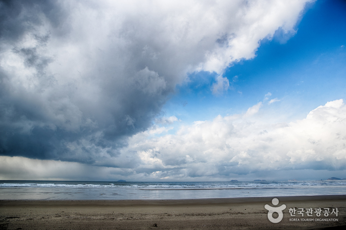 Anmyeon Beach is a 10-minute drive away from Yeonyukgyo Bridge, located in southern Taean. The way to the beach is led by sceneries of mountains and rice paddies. Upon arrival, the view gets replaced with a wide-open sandy beach with small islets scattered across the ocean. Anmyeon Beach is also a popular site for rock fishing and catching clams and baby crabs at low tide.