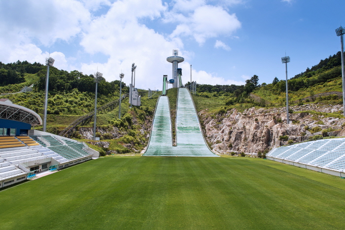 Alpensia Resort, located approx. 184 kilometers from Seoul in Daegwallyeong, Pyeongchang-gun, Gangwon-do, is a tourism & leisure complex open year round. The resort allows visitors to enjoy the area’s pristine natural beauty throughout each of the four seasons. The name "Alpensia" is a combination of the words "Alpen," (German for the Alps), "Asia," and "Fantasia;" together they reflect the resort’s scenic view of the "fantastic Alps of Asia." <br><br>The complex boasts a variety of super deluxe luxury accommodations and top-notch leisure facilities such as a 45-hole golf course, convention center, water park and ski slopes. The resort successfully hosted the IBU Biathlon World Cup Pyeongchang in 2008 and boasts excellent ski jump and biathlon facilities, a monorail, cross-country ski slopes, and a large stadium. After a hard day out on the slopes or golf course, visitors can head to the sky lounge, ecology learning center, or Retail Village shopping mall. The resort is also adjacent to many other tourist attractions such as Odaesan Mountain, Samyang Sheep Ranch, Korea Botanic Garden, Lee Hyo-Seok Memorial Hall, and Herbnara Farm.