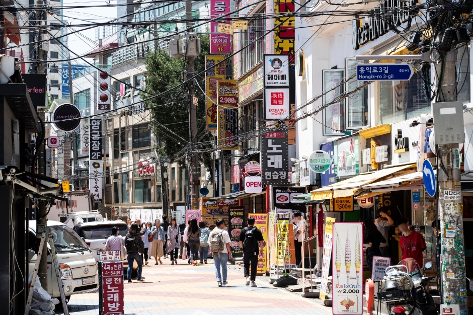 Hongdae is a neighborhood known for its youthful ambience, with shops selling everything from clothing and cosmetics to living goods and books, as well as unique cafés and restaurants. The streets are also filled with buskers and dance performances, making a walk here quite entertaining. Special streets such as ateliers’ street (lined with private institutions for art students preparing for university entrance exams), Picasso’s Street, and Club Street are also must-go places for anyone hoping to fully experience the Hongdae area.