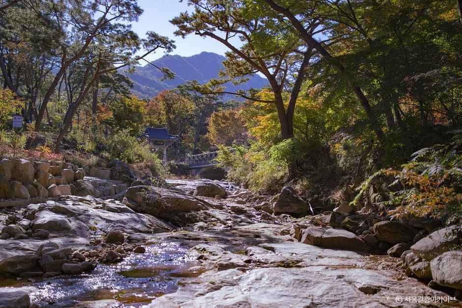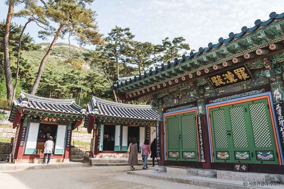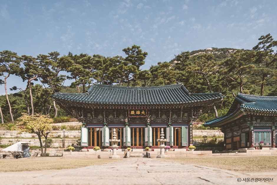 Jingwansa Temple is one of the four Buddhist temples that surround Seoul. It was known as the center of Buddhism and academics. Jingwansa Temple is home to a variety of buildings, such as Daeungjeon Hall, Myeongbujeon Hall, and Nahanjeon Hall, all surrounded by the beautiful nature of Bukhansan Mountain. In fact, the temple complex is a popular fall destination for its fall colors. Visitors can also visit the nearby Eunpyeong Hanok Village.