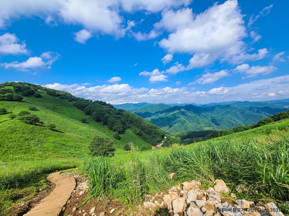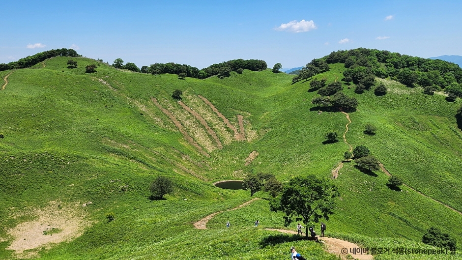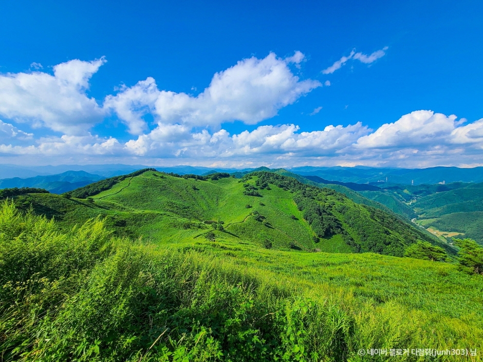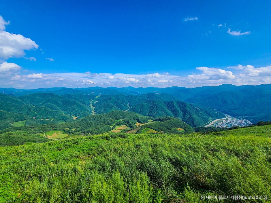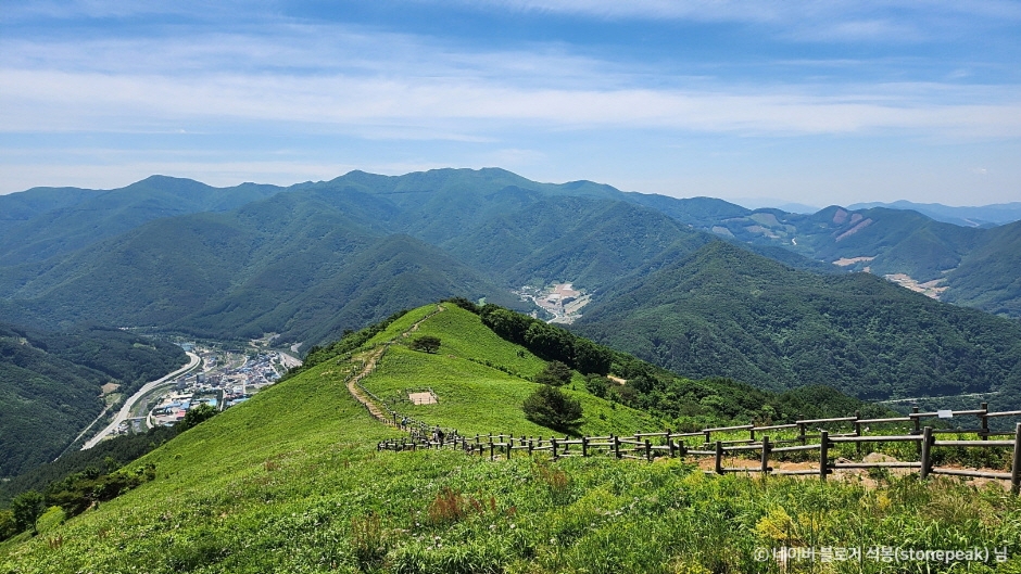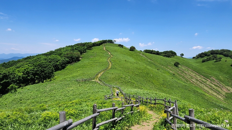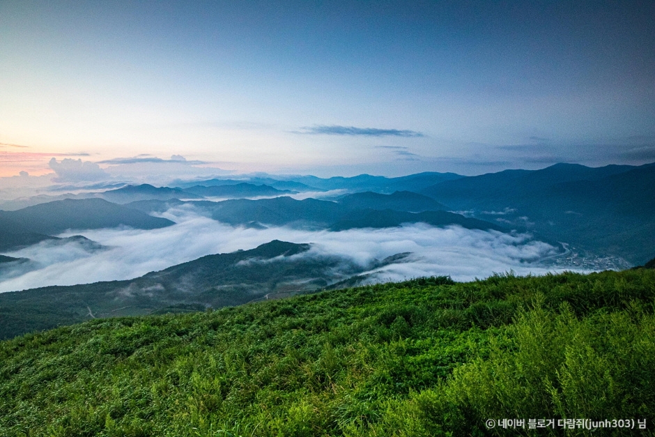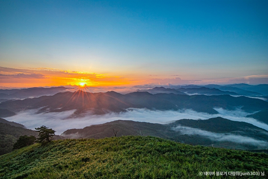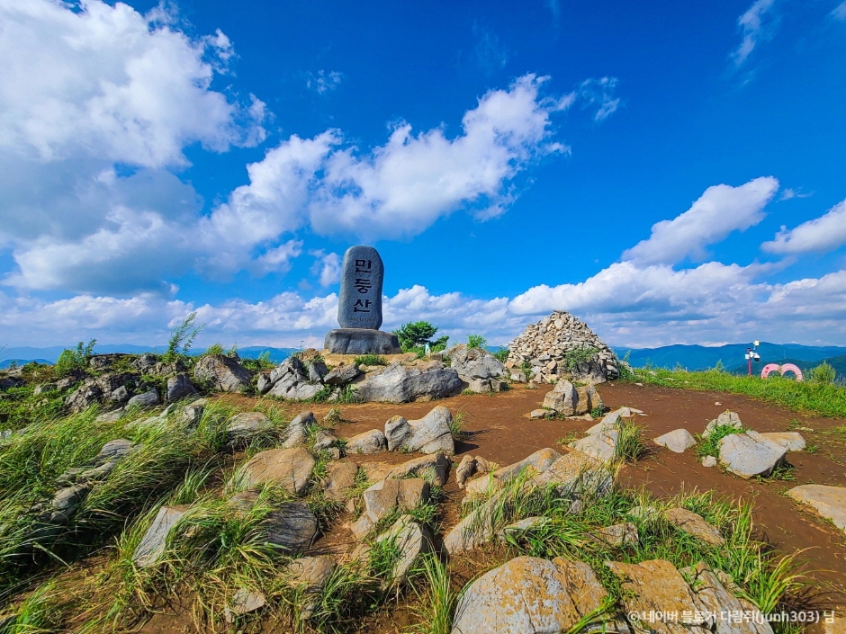 Situated in Jeongseon, Gangwon-do, Mindungsan Mountain (1,118.8 meters) is an unusual site when compared to other national peaks. As hinted by its name's meaning "bare mountain," there are few trees near its summit. Locals also refer to it as Eoksaesan (silver grass) Mountain because of the waves of eulalia covering its sides.