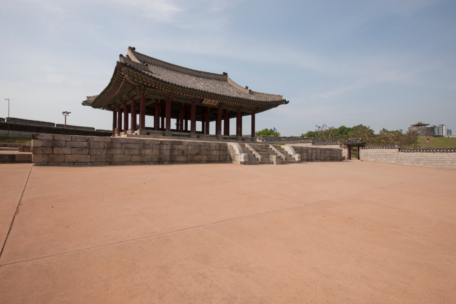 Yeonmudae located inside Suwon's Hwaseong Fortress, a UNESCO World Heritage site. Situated on a relatively high hill between Changnyongmun (the east gate of the fortress) and Hwahongmun (a north floodgate), Yeonmudae is an excellent military observation post with sweeping views of the inside of the fortress. After the fortress was completed in 1796, Yeonmudae was used as a training ground for troops for over two centuries, where they learned fighting skills involving swords, spears and arrows.