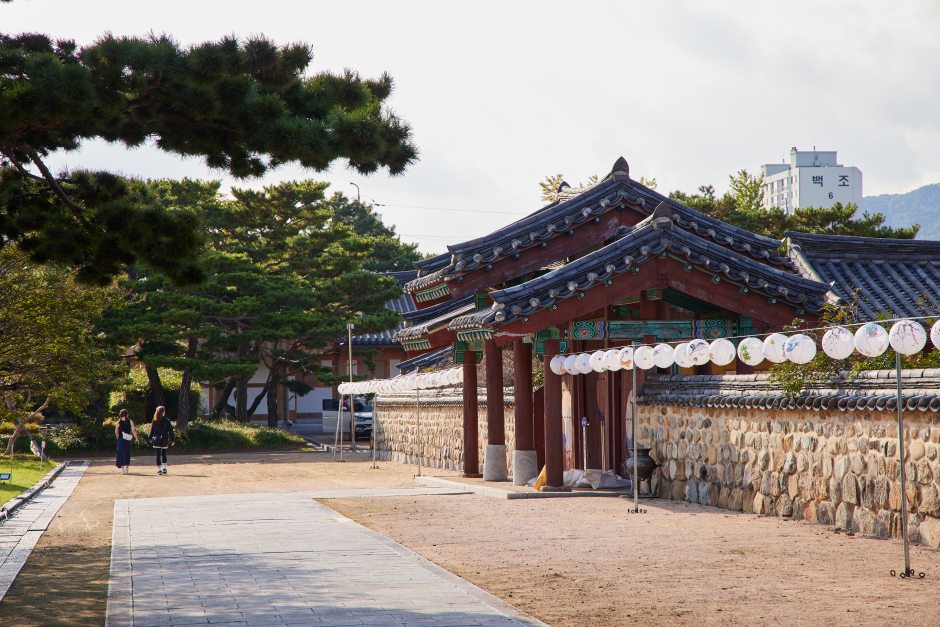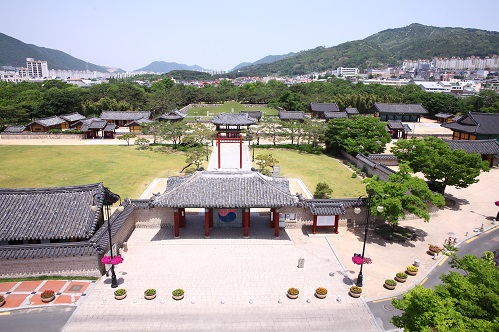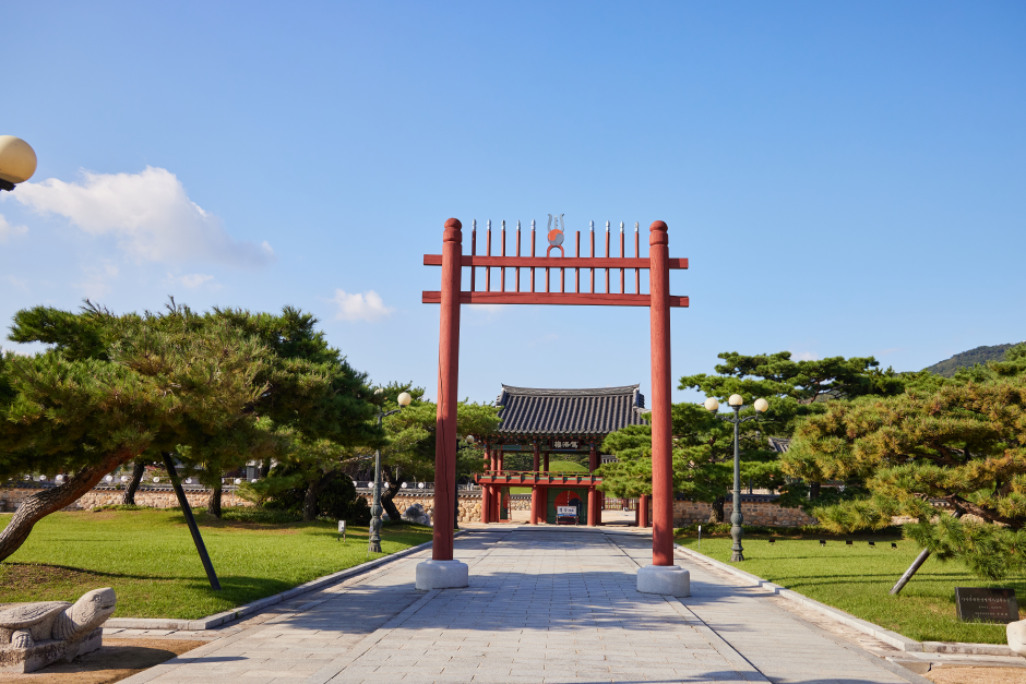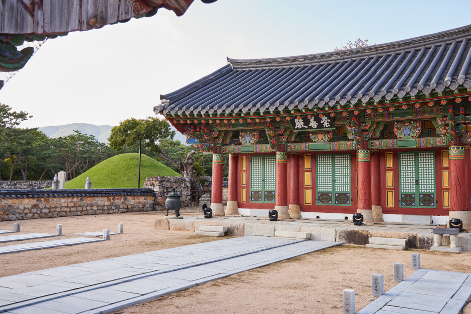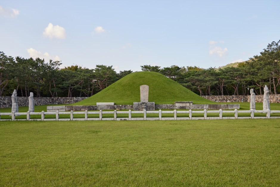 King Suro founded the Garak Kingdom in AD 42 and married Heo Hwang-ok, a princess from the Indian country of Ayuta, in AD 48. He was the founder of the Gimhae Kim family. Heo Yeop, a Yeongnam governor, gave the tomb its current look in the 13th year of the reign of King Seonjo (1580). The tomb compound includes various buildings, including the Sungseonjeon (where the ancestral tablets of King Suro and his queen are kept), Anhyanggak, Jeonsacheong, and Jegigo, as well as stone structures, such as a sindobi (tombstone) and gongjeokbi (monument established to pay homage the deceased). The tombstone in front of the royal tomb was built in the 25th year of the reign of King Injo (1647) of the Joseon dynasty. The name Sungseonjeon was bestowed on the tomb by King Gojong in the 21st year of his reign (1884).