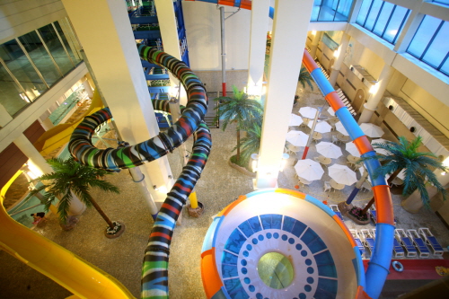 The waterpark and spa offer both an exciting and a relaxing experience, allowing visitors to enjoy both cool waves and warm spa at once. In addition, it houses a state-of-the-art wave pool, various other types of pools, Space Balls, various waterslides, an aqua bar, and unique styled spa facilities, which give this Western-style water theme park a plethora of attractions for visitors of all ages.