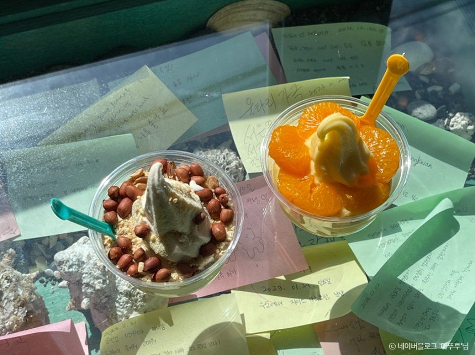 Jimmys Natural Ice Cream specializes in delicious desserts made from the specialty of Udo Island, Jeju - peanuts. Along with their signature menu item, Udo Peanut Ice Cream, they also offer popular choices like the Udo Peanut Cream Latte and coffee, unique to Udo.