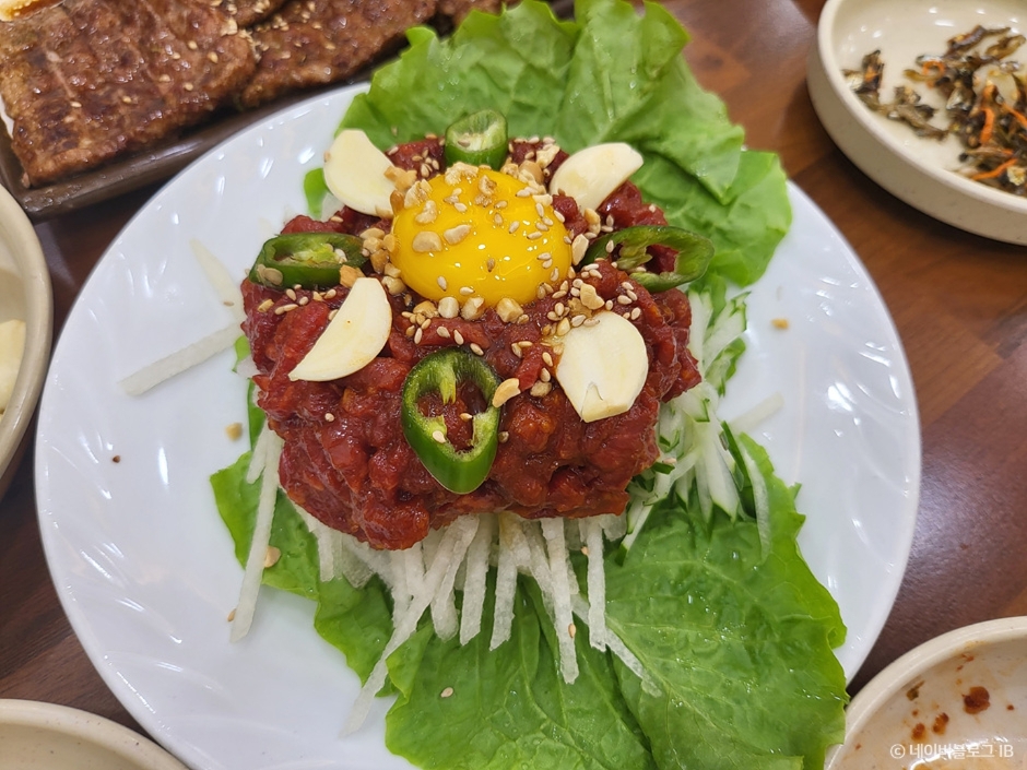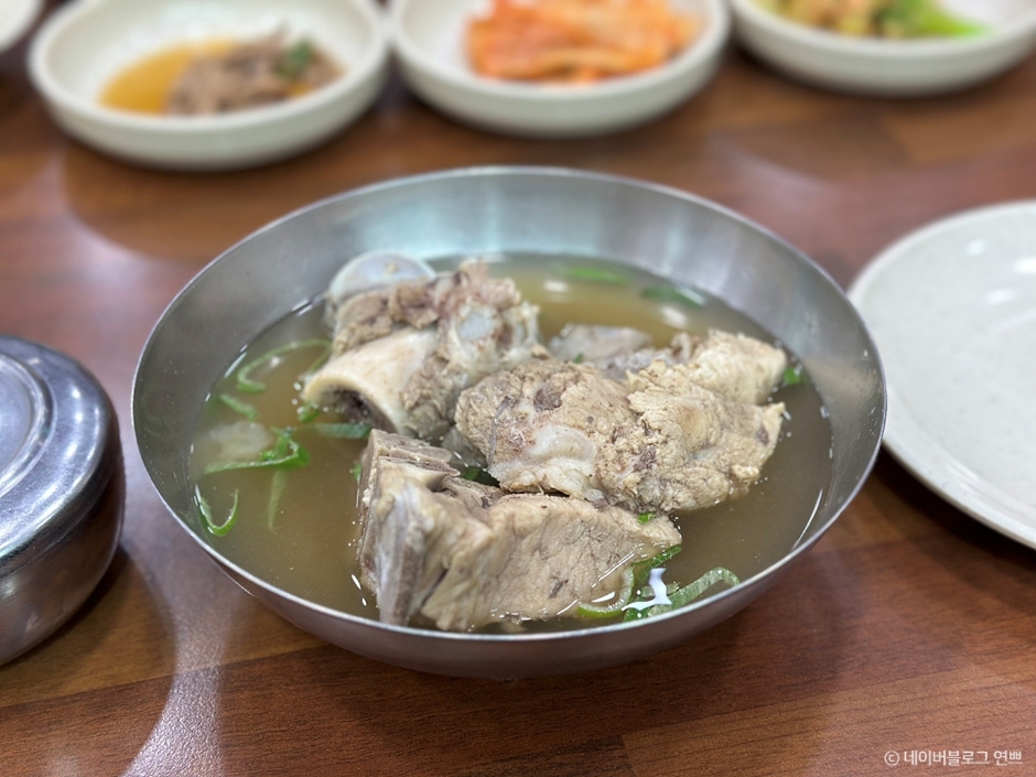 Songjeong Tteokgalbi 1hojeom is a tteokgalbi (grilled galbi patties) specialty restaurant established in 1976. Located in Songjeong-dong Tteokgalbi Street, it stands out among the twenty or so eateries in the area as a renowned dining destination. The tteokgalbi here boasts a tender texture, made by blending high-quality beef and pork, and it is known for its affordable price. A highlight of dining here is the complimentary bone broth soup served alongside the tteokgalbi, a dish made by simmering pork bones and radish for hours.