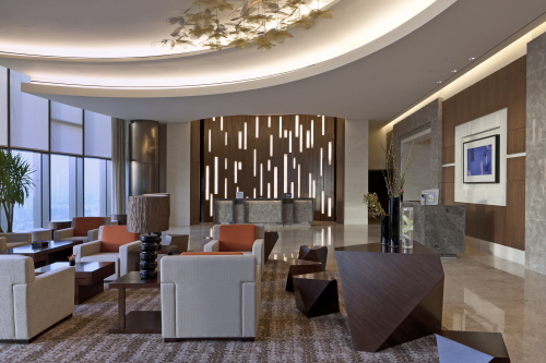 Sheraton Seoul D Cube City Hotel has a variety of innovative features, but the most unique trait is that the lobby, restaurant, and bar are located on the very top of the building on the 41st floor! The 269 guestrooms are also located in the upper levels of the D Cube structure, allowing for a bird’s-eye view of the city.