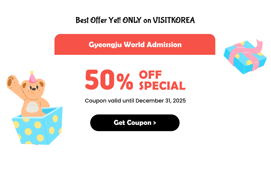 Ticket prices for Gyeongju World vary by season; the coupon discount rate will be applied to the price set on the day of your visit.