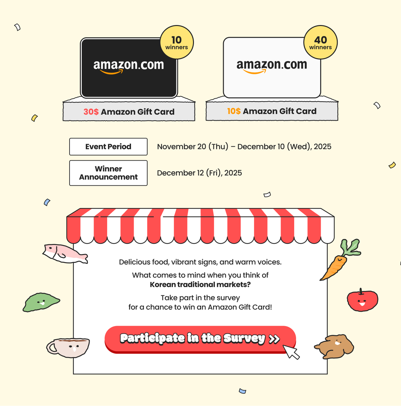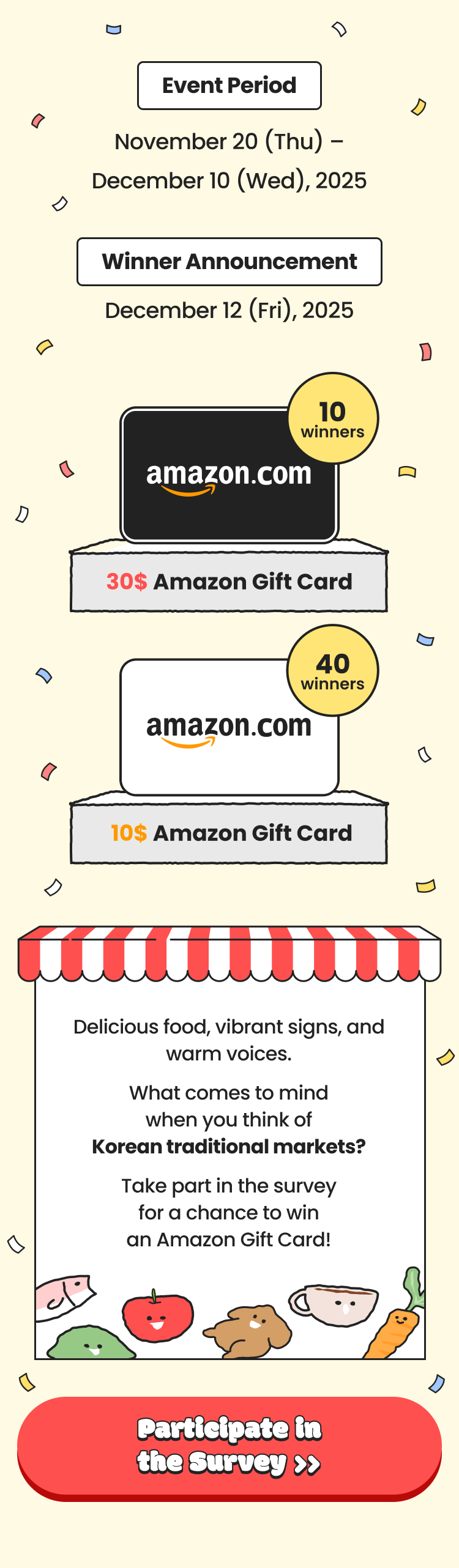 • This event is hosted by the Korea Tourism Organization (KTO), and winners’ information (email addresses) will be shared with partner companies providing the prizes.