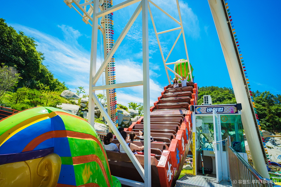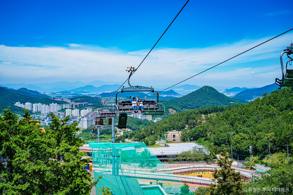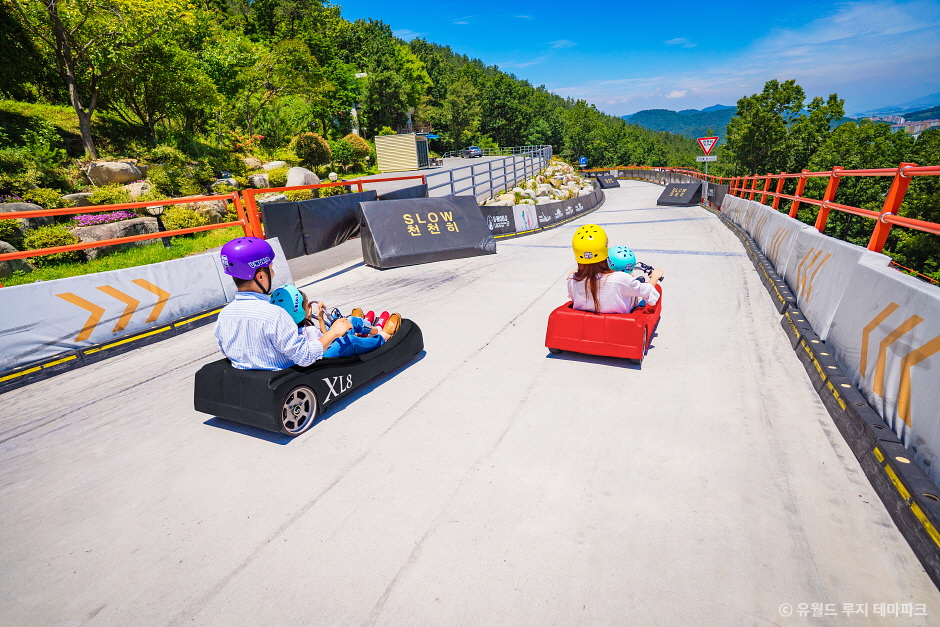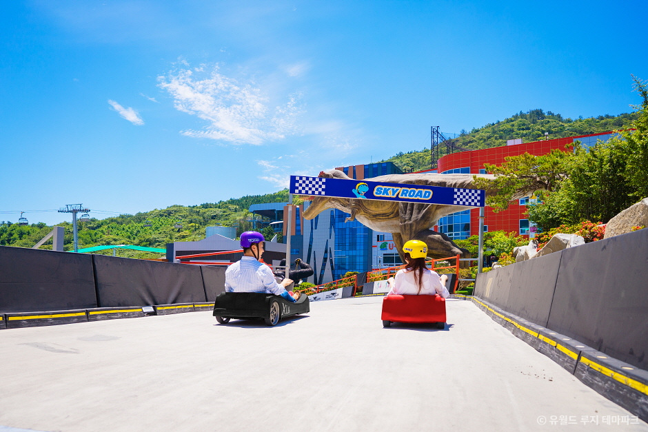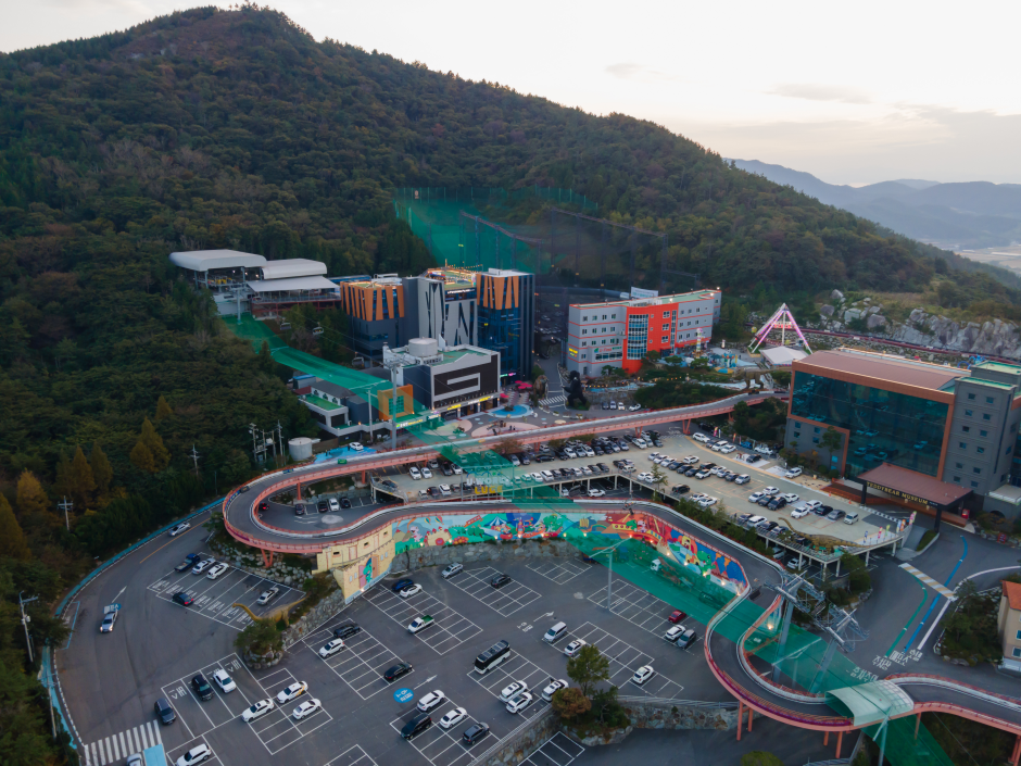 U-World Luge is a thrilling experience for people of all ages and genders with a specially made non-motorized cart that uses gravitational force to glide down an ultralong, 1.3-kilometer-long track. The course features a variety of dynamic scenes such as tunnels, Attraction section, Skybridge Downhill section and Natural Forest section built on slopes. U-World Top Rider is located on the mid-slope region of Ansimsan Mountain, which is a famous sunrise watching spot with an altitude of 347 meters. Here, you can enjoy a wide open, uninhibited view of the sea and the beautiful natural environment that harmonizes mountains, sea and natural rocks.