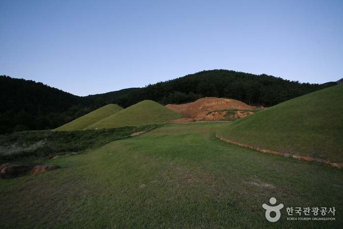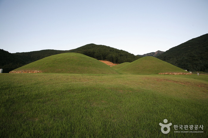 Songhyeon-dong Ancient Tombs, located under Mokmasanseong Fortress at the west foot of Hwawangsan Mountain, are large ancient tombs located in the southwest by the road leading to Hyeonpung. The Gyo-dong Ancient Tombs are dozens of ancient tombs that were once gathered around a large royal tomb, which among only eight tombs with damaged mounds now remain. Some of these ancient tombs were excavated by the Japanese between 1918 and 1919, and most of the relics were moved to Japan, and only some of them remain in Korea. According to the results of the investigation at the time, the large tombs were either built in a passageway form or an entry gate form.