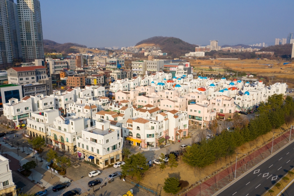 Asan Mediterranean Village, also called Blue Crystal Village, is made up of buildings reminiscent of those found in a Mediterranean village. It is particularly interesting because it is housed in the heart of a modern city. The village is divided into two sections, one taking after the Provence in southern France and the other resembling Santorini in Greece. Famous sights include the photo areas of angel’s wings and a lighthouse-shaped red postbox, along with cafés and stores.
