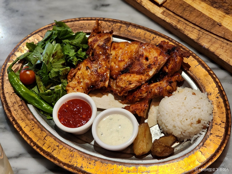 Kervan is a Turkish restaurant located in Itaewon, offering authentic kebab, pidé, and Turkish desserts. It faithfully recreates the Turkish culture and food through its interior, decorated with traditional tiles, and dishes prepared by a chef from Türkiye. Main menus include Chicken steak, Rich pidé, and Chicken shish kebab.