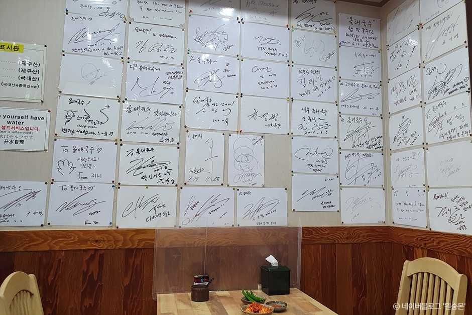 Ollae Guksu is celebrated for its delectable gogi guksu (meat noodles), which are served in a rich and savory pork bone broth. The combination of tender pork slices and the restaurant's homemade kimchi creates a truly outstanding flavor. The meal is complemented with side dishes including kimchi, ssamjang (mixed paste), and chili peppers.