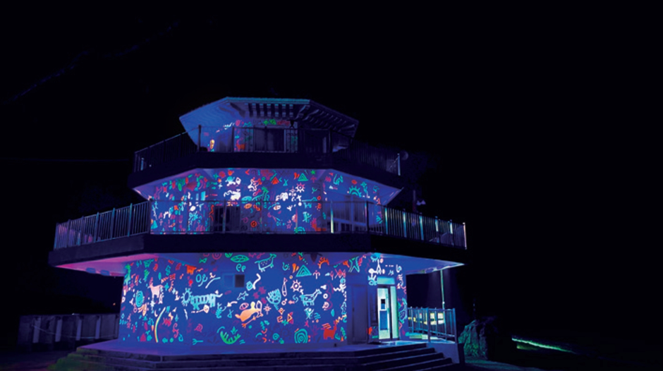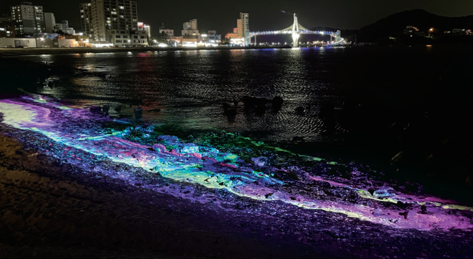 Myeongseondo Island is an uninhabited island near Jinha Beach in Ulju-gun, Ulsan. The island takes on a vibrant appearance after the sun sets, with various media art displays lighting up the pathways. The island is accessible via a temporary bridge set up during the admission times.