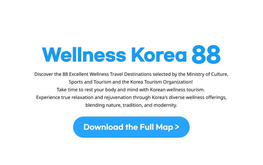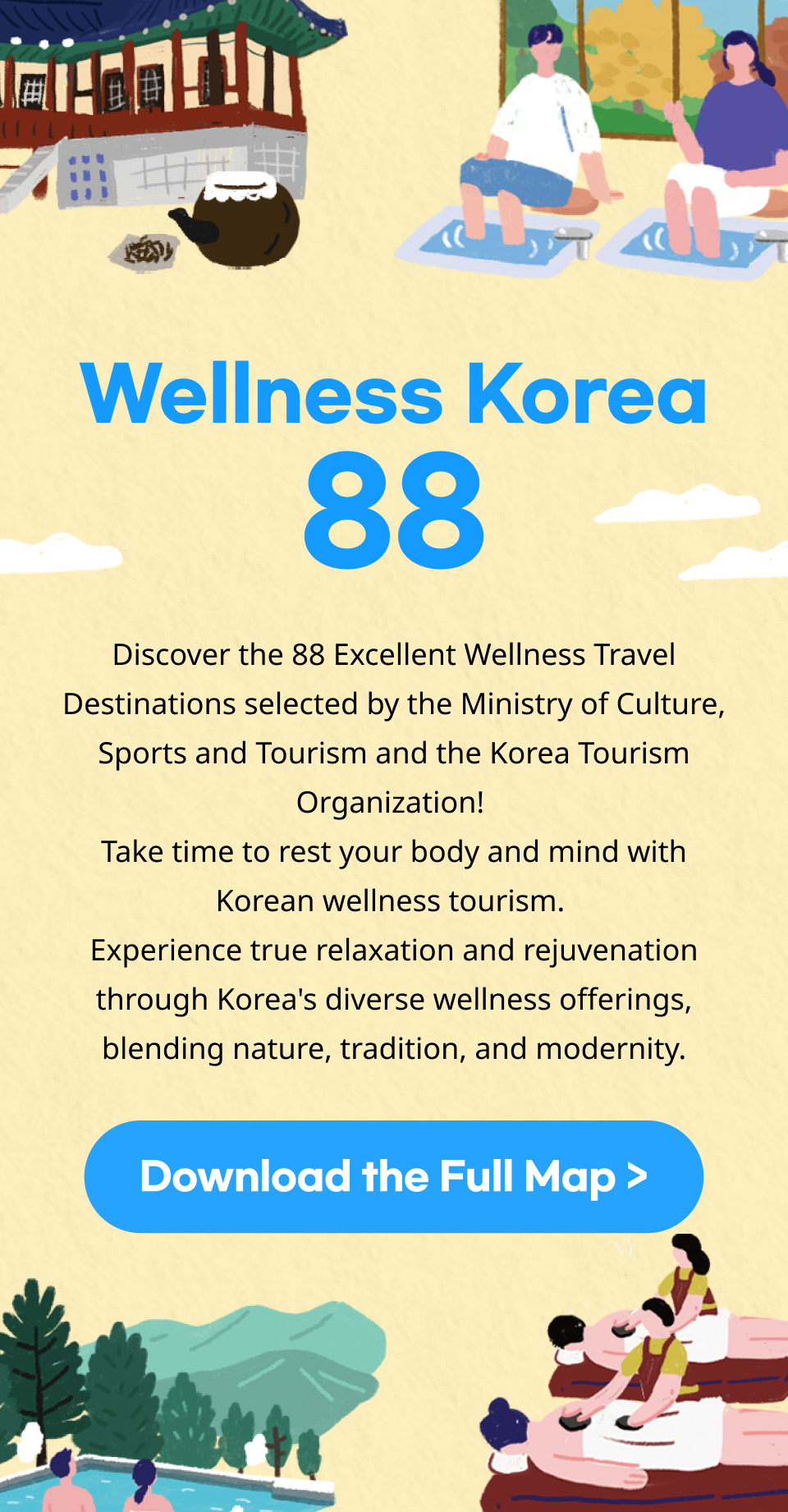 Discover the 88 Excellent Wellness Travel Destinations selected by the Ministry of Culture, Sports and Tourism and the Korea Tourism Organization! Take time to rest your body and mind with Korean wellness tourism. Experience true relaxation and rejuvenation through Korea's diverse wellness offerings, blending nature, tradition, and modernity.