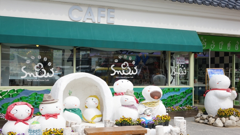 An art shop café with the theme of Nami Island's Snowman. Customers can enjoy fresh coffee, gelato, and other varieties.