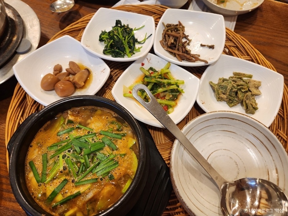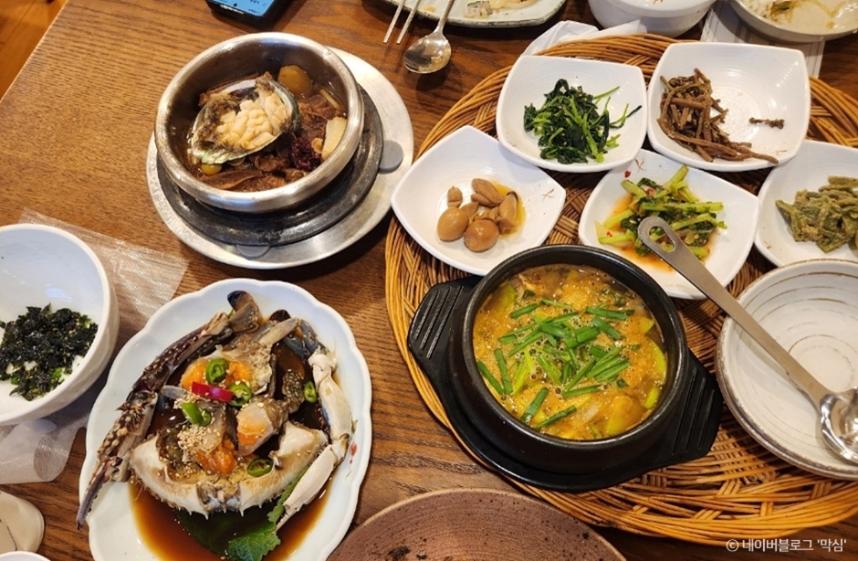 Hanjeongsik Daemun is a traditional Korean restaurant known for its set meals featuring nutritious pot rice and around 15 side dishes made with natural ingredients. Their main menu includes ganjang gejang jeongsik (soy sauce marinated crab set menu), bori gulbi jeongsik (barley-aged dried yellow croaker set menu), and jeonbok galbi jjim jeongsik (braised abalone and galbi set menu). They offer a variety of Korean table d'hote courses such as sura jeongsik (royal kitchen course table) and teuk jeongsik (special course table), each consisting of 5-6 special dishes, all at reasonable prices. Located in a renovated hanok, next to the Banghak-dong Catholic Church.