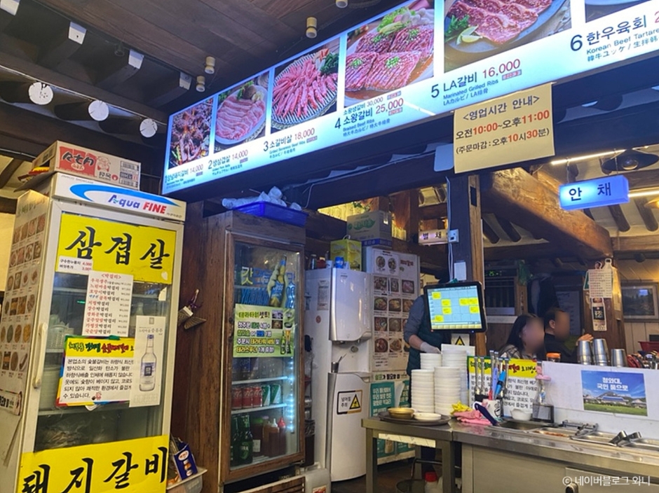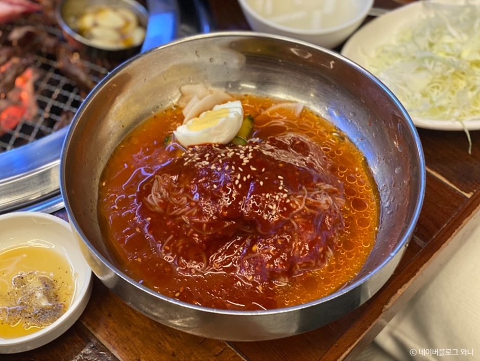 Chebudong Janchijip Dwaejigalbi is a restaurant where marinated pork galbi are grilled over charcoal fire. It offers various side dishes along with rich soybean paste jjigae. Enjoying cold buckwheat noodles with the tender marinated pork galbi, which are well-aged, is also recommended. Additionally, there are individual menu items such as dubu jeongol (bean curd hot pot), hoe naengmyeon (cold buckwheat noodles with raw fish), bibimbap, and gamjajeon (potato pancake).