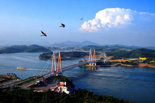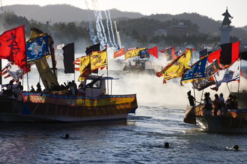 Woosooyoung Tourist Attractions area became a national tourist site in 1986, and Memorial Park of Admiral Yi was added in 1991, serving as an educational site. The area overlooks Uldolmok, and features a shrine from the past that commemorates the great victory that was achieved by Admiral Yi Sun-Sin in the Battle of Myeongnyang (1597) and a large geobukbae (turtle ship). The area hosts a history festival every October and covers many history-related experience programs throughout the year.